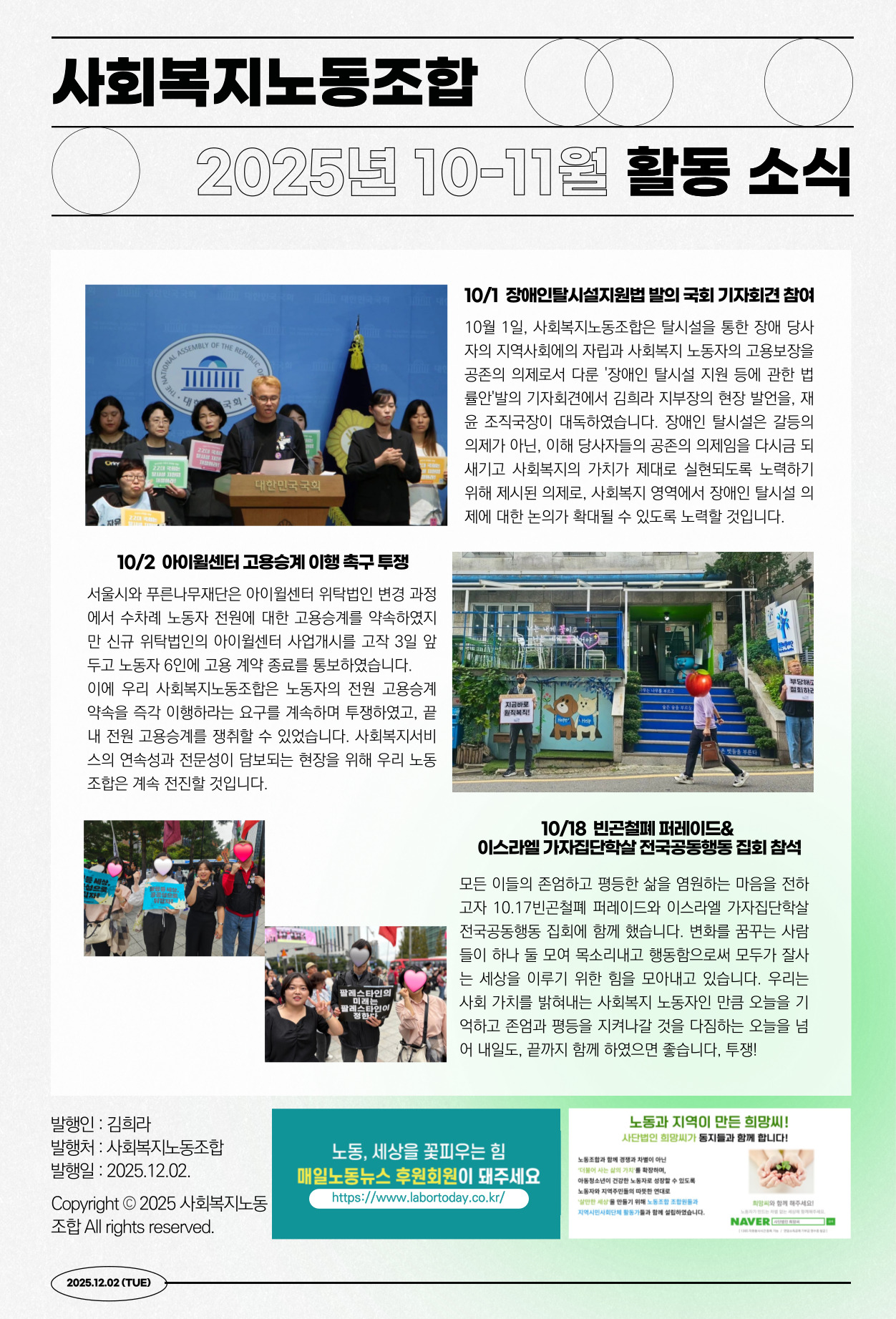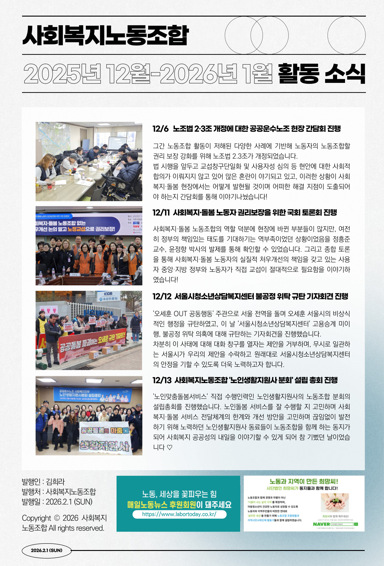 ¹ÎÁÖ³ëÃÑ Àü±¹°ø°ø¿î¼ö³ëÁ¶ »çȸº¹ÁöÁöºÎ(»çȸº¹Áö³ëµ¿Á¶ÇÕ)´Â »çȸº¹Áö¼ºñ½º¸¦ Á¦°øÇÏ´Â ÀÏÀ» ÇÏ´Â ³ëµ¿ÀÚ¶ó¸é ´©±¸³ª °¡ÀÔÇÒ ¼ö ÀÖ´Â ³ëµ¿Á¶ÇÕÀÔ´Ï´Ù. ¶ÇÇÑ »çȸº¹Áö¸¦ °øºÎÇÏ´Â Çлý µî »çȸº¹ÁöÇöÀå¿¡¼ ÀÏÇϰí ÀÖÁö ¾Ê´õ¶óµµ »çȸº¹Áö³ëµ¿Á¶ÇÕÀÌ Ãß±¸ÇÏ´Â °¡Ä¡¿Í ÁöÇâ¿¡ µ¿ÀÇÇÏ´Â »ç¶÷µµ °¡ÀÔÇÒ ¼ö ÀÖ½À´Ï´Ù. »çȸº¹Áö³ëµ¿Á¶ÇÕÀº »çȸº¹Áö³ëµ¿ÀÚÀÇ ³ëµ¿±Ç ÀïÃë, »çȸº¹Áö½Ã¼³ÀÇ ¹ÎÁÖÀû ¿î¿µ, »çȸº¹ÁöÁ¦µµÀÇ °³¼±°ú ¼ºñ½º È®Ãæ µî ³ëµ¿Çعæ°ú ¹ÎÁߺ¹ÁöÀÇ ½ÇÇöÀ» À§ÇØ È°µ¿ÇÕ´Ï´Ù.